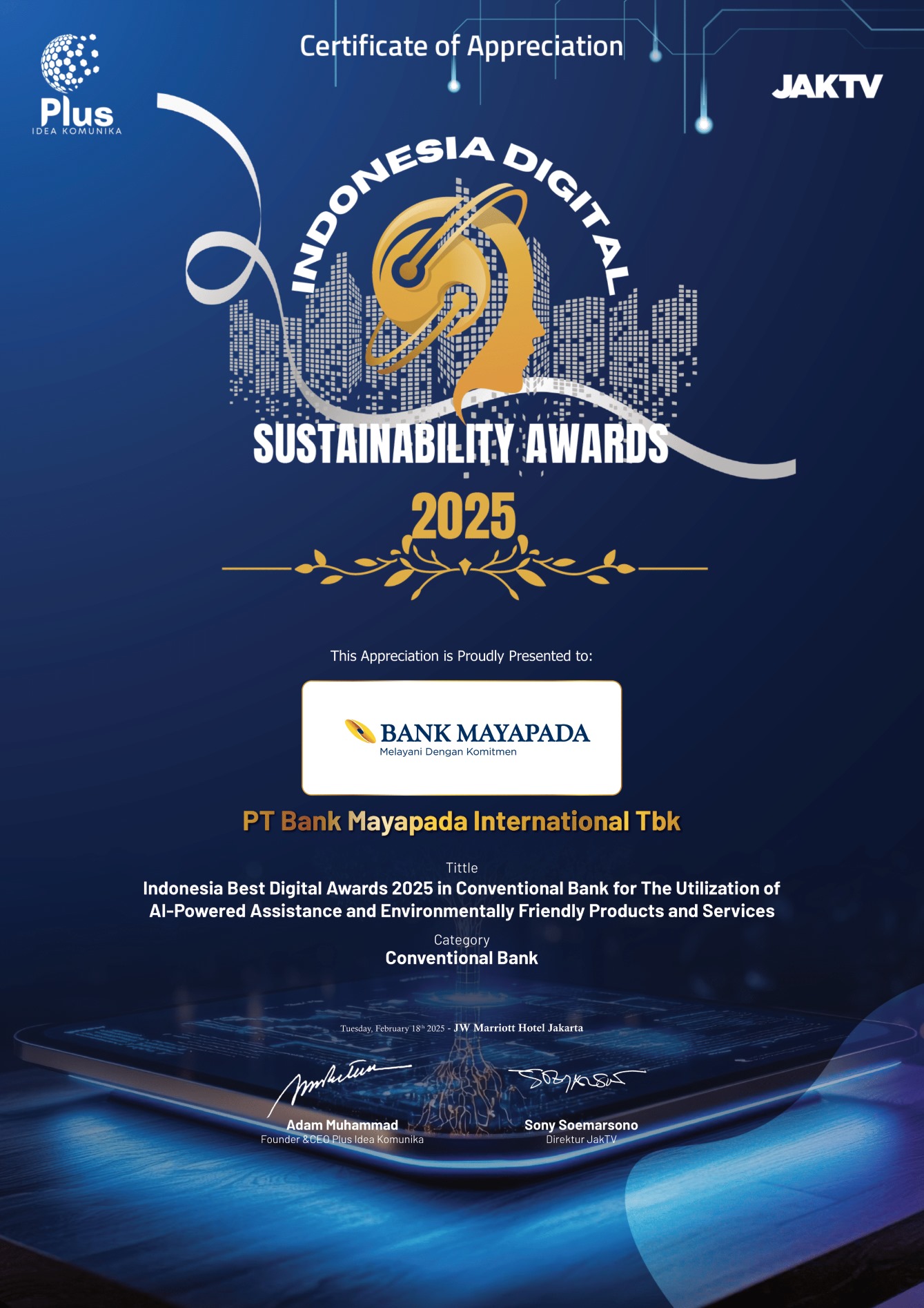 18-Feb-2025 | Indonesia Best Digital Awards 2025 in Conventional Bank for The Utilization of AI-Powered Assistance and Environmentally Friendly Products and Services | JAK TV |