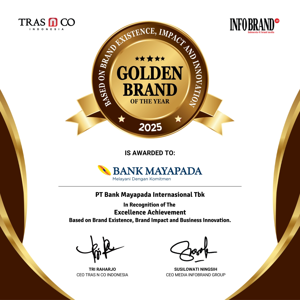27-Feb-2025 | Golden Brand of The Year 2025 in Recognition of The Excellence Achievement Based on Brand Existence, Brand Impact, and Business Innovation | DIGITAL BRAND AWARD – INFOBRAND |