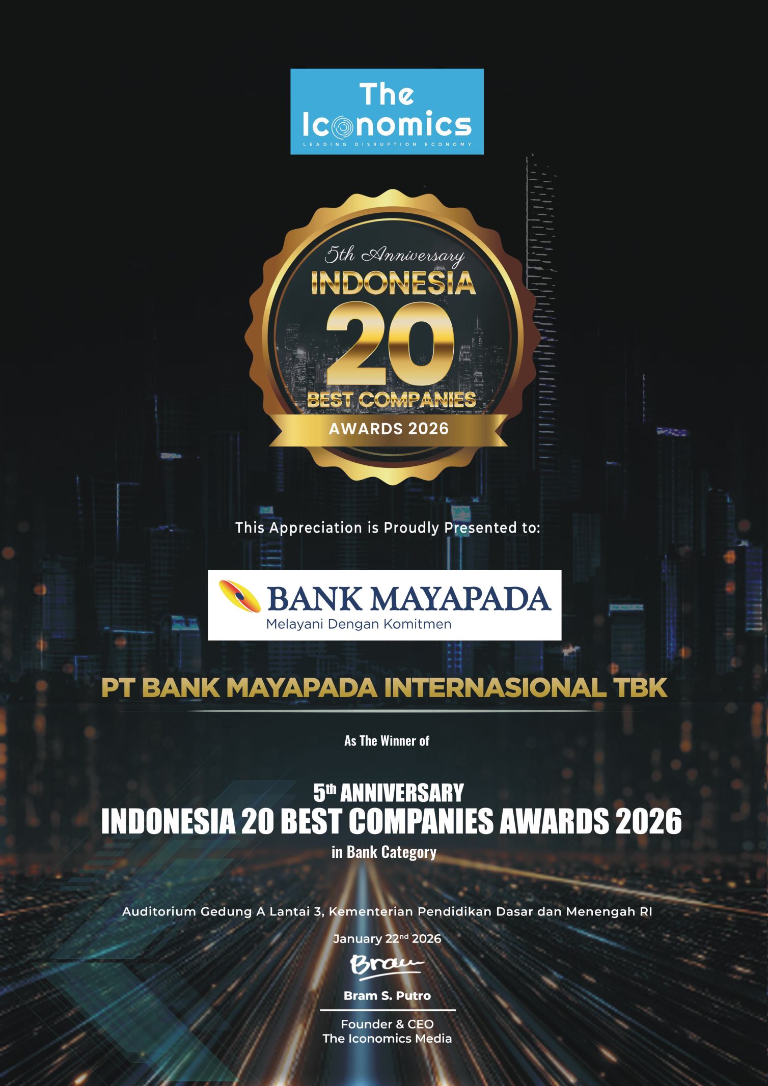 22-Jan-2026 | 5th Anniversary Indonesia 20 Best Companies Awards,Bank Category | THE ICONOMICS |