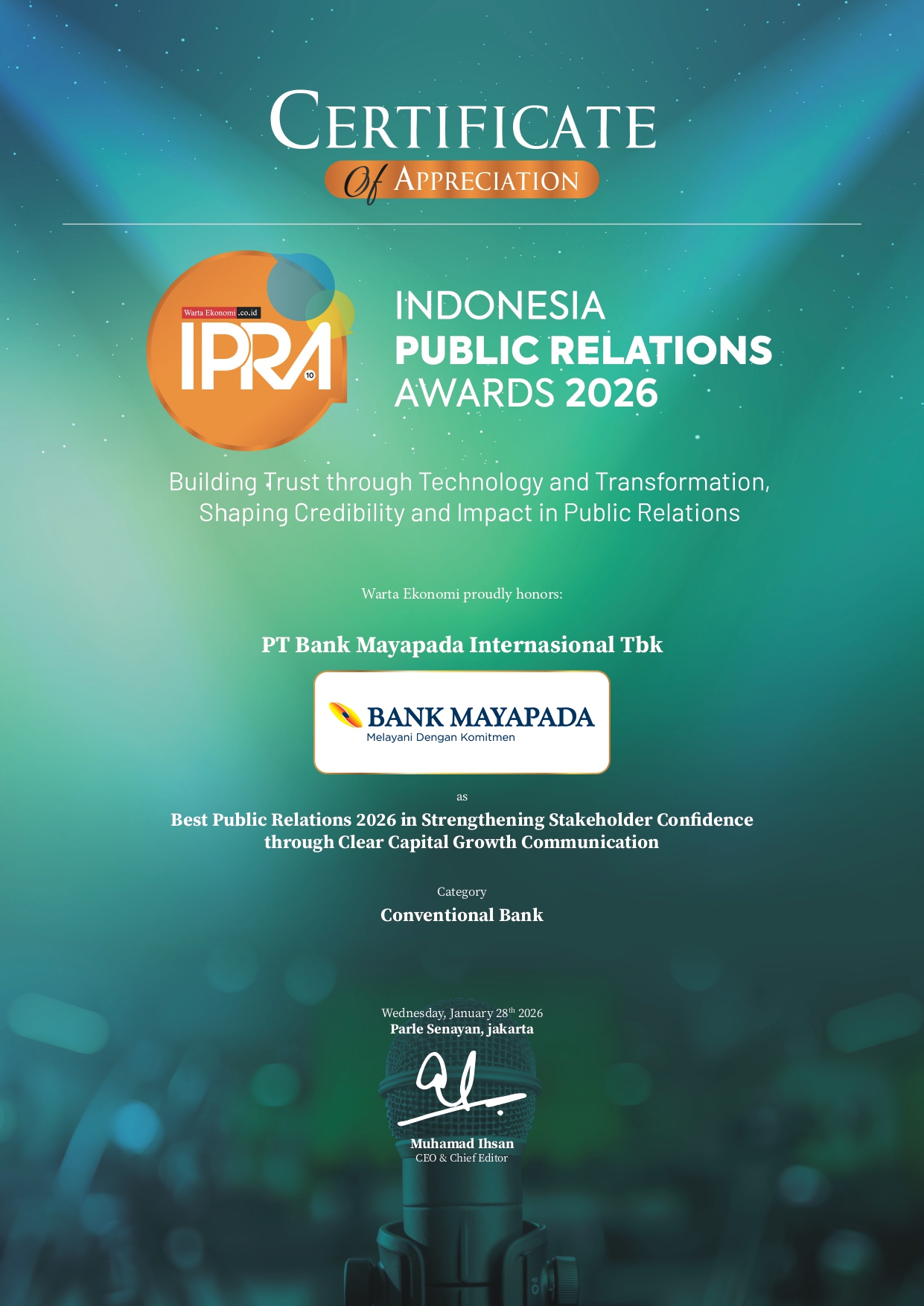 28-Jan-2026 | Best Public Relations 2026 in Strengthening Stakeholder Confidence through Clear Capital Growth Communication Category: Conventional Bank | WARTA EKONOMI |